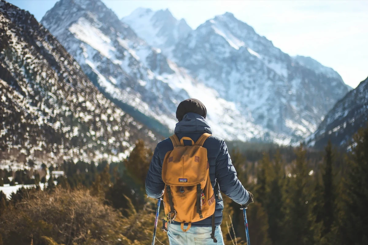 Men’s Blue Leather Jacket and Brown Backpack